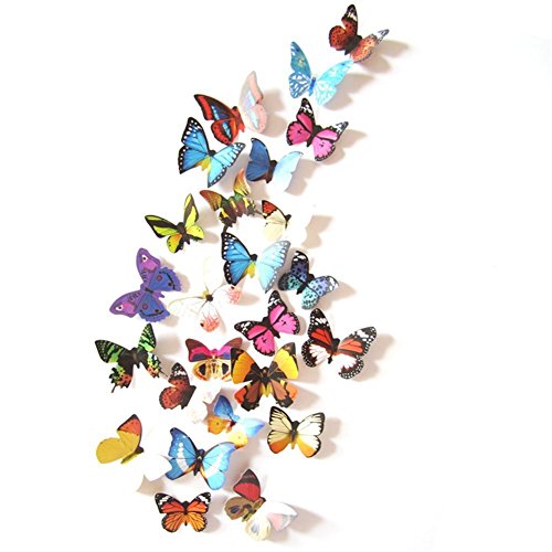 LiveGallery 24 PCS Removable 3D PVC Colorful Butterfly Wall Decals DIY Home art Decor Decorations Multicolor Butterflies Wall Stickers Murals for Kids Rooms Girls Babys Bedroom Living Room Offices