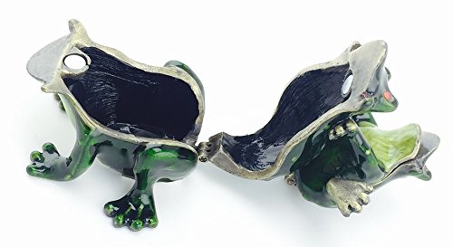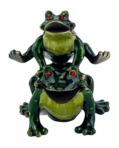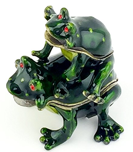 Welforth Hopping Frogs Pewter Trinket Box, Enamel with Red Crystal Eyes, 2" Tall