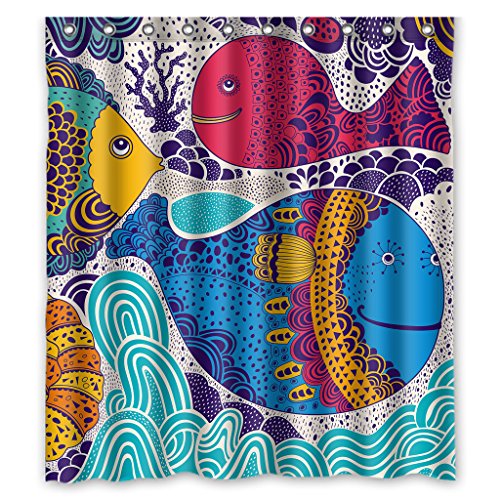 GCKG Unique Fantacy Cartoon Fish Shower Curtain 66" x 72" Waterproof Polyester Fabric Shower Curtain