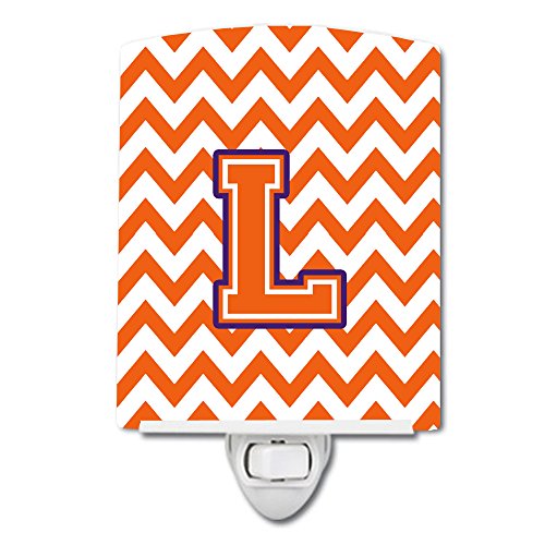 Caroline's Treasures Letter L Chevron Orange and Regalia Ceramic Night Light, 6 x 4", Multicolor