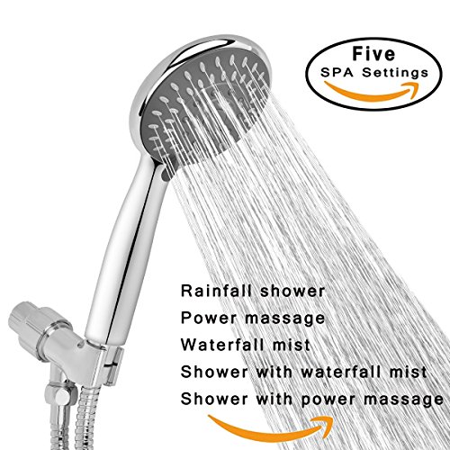 - 【5 settings Design】Multi Function 5 settings bathroom shower head will provide you a pleasant shower experience. Choose from the following modes: rainfall shower, power massage, waterfall mist, shower with power massage, shower with waterfall mist. The massage shower head will enable you to relax and enjoy a natural SPA at home after a series of working pressure.