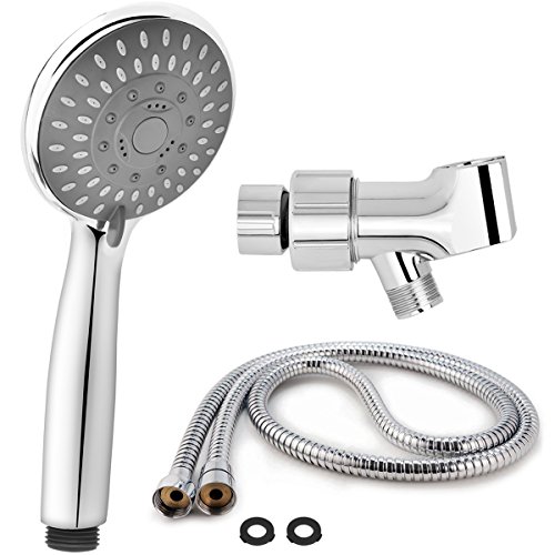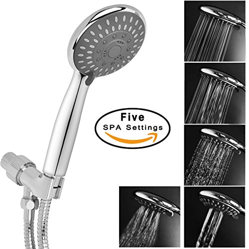 Aoche 5 Function Luxury Handheld Shower Head with Hose and Bracket Holder, Massage, Rainfall, Spa Experience, High Pressure, Water Saving, Easy Installation, Chrome Finish