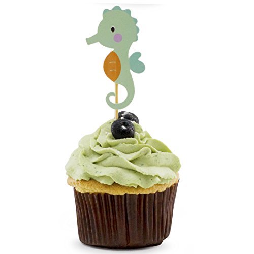 - Quantity: pack of 24pcs cupcake toppers, including 6 designs (Seahorses, fish, octopus, starfish, whales, crabs), each design contains 4pcs