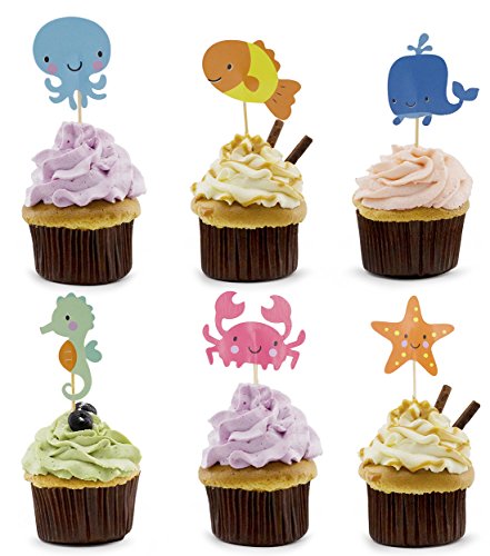Lolipapa Cute Sea Creature Cake Cupcake Toppers Picks for Baby shower, Kids Birthday Party (Pack of 24pcs)