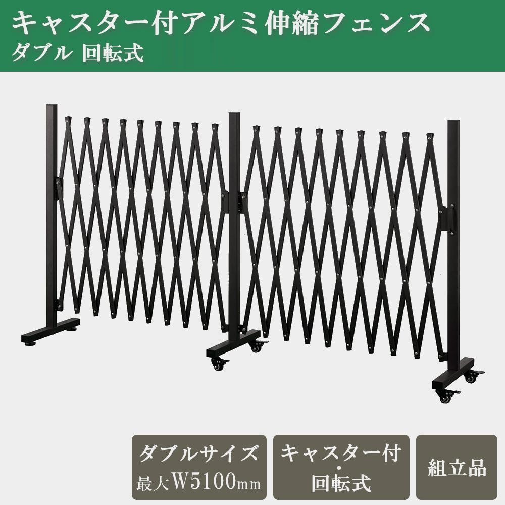 ガレージやお庭等で仕切りとして使えるフェンスです。スペースに合わせて伸縮できます。 製造国:中国 素材・材質:アルミ、スチール 商品サイズ:W590~5100×D384×H1035mm 重量:10kg 仕様:組立品キャスター:ストッパー付 付属品:組立用部品、組立説明書 ※サプライヤー直送品 ご注文後3~4営業日後の出荷となります【商品名】キャスター付アルミ伸縮フェンス ダブル 回転式 AL-FF510W