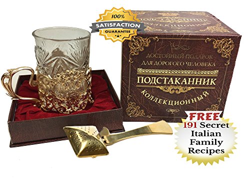 Binding : Kitchen Product Description Dazzle yourself and your friends or guests with the elegance and charm of these unique premium RUSSIAN STYLE TEA CUP. The impressive imperial design, quality crystal glass design and the gold colored Podstakannik holder all add up to drinking your favorite beverage with flare and style. ADD to that our matchless and exceptionally designed and constructed long handled TOP UP stainless steel TEA INFUSER. The flow through design of this tea strainer and ambiance created by our regal RUSSIAN TEA CUP will accentuate and heighten the simple pleasure and respite,only time quietly savoring a cup of tea can deliver. Just the word EXCELLENT for any TEA CON NOSIER OR TEA CUP COLLECTOR. 0