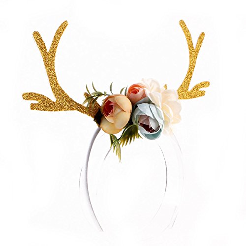 Package Including 1 x Reindeer Antler Headband Christmas Flowers Headband Khaki 0