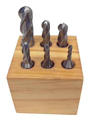 HHIP 8001-0007 6 Piece High Speed Steel M2 Ball Nose End Mill Set, 4-Flute, 1/8" - 1/2" Size Range