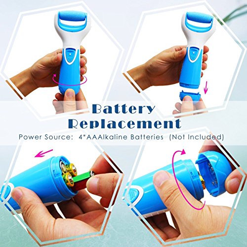 ☛ POWER -- Insert 4 AA batteries (not included) for operation power. It's lightweight design makes it easy to hold or carry for travel. Gently and effectively buffs away your rough, dry skin effortlessly leaving you with soft, beautiful feet, without scarping it and without the danger of blades.