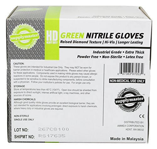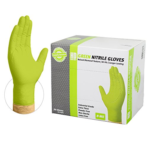 SupplyMaster - SMDTGN8M - Diamond Texture Nitrile Gloves - Disposable, Powder Free, Industrial, 8 mil, Medium, Green (Case of 200)