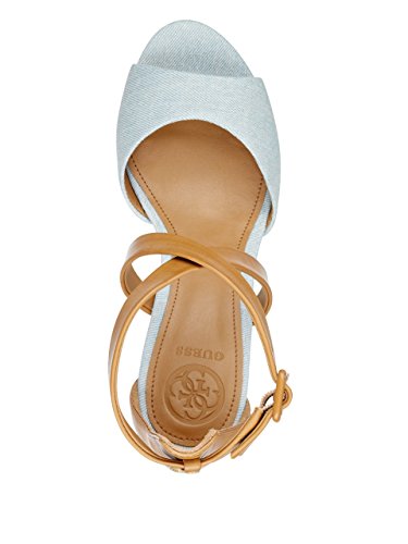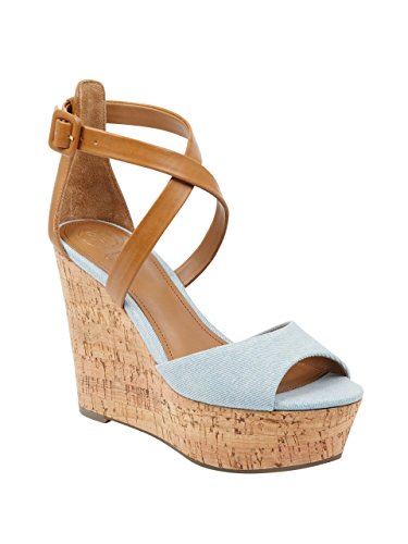GUESS Women's Gacinta Denim Color-Block Cork Wedges