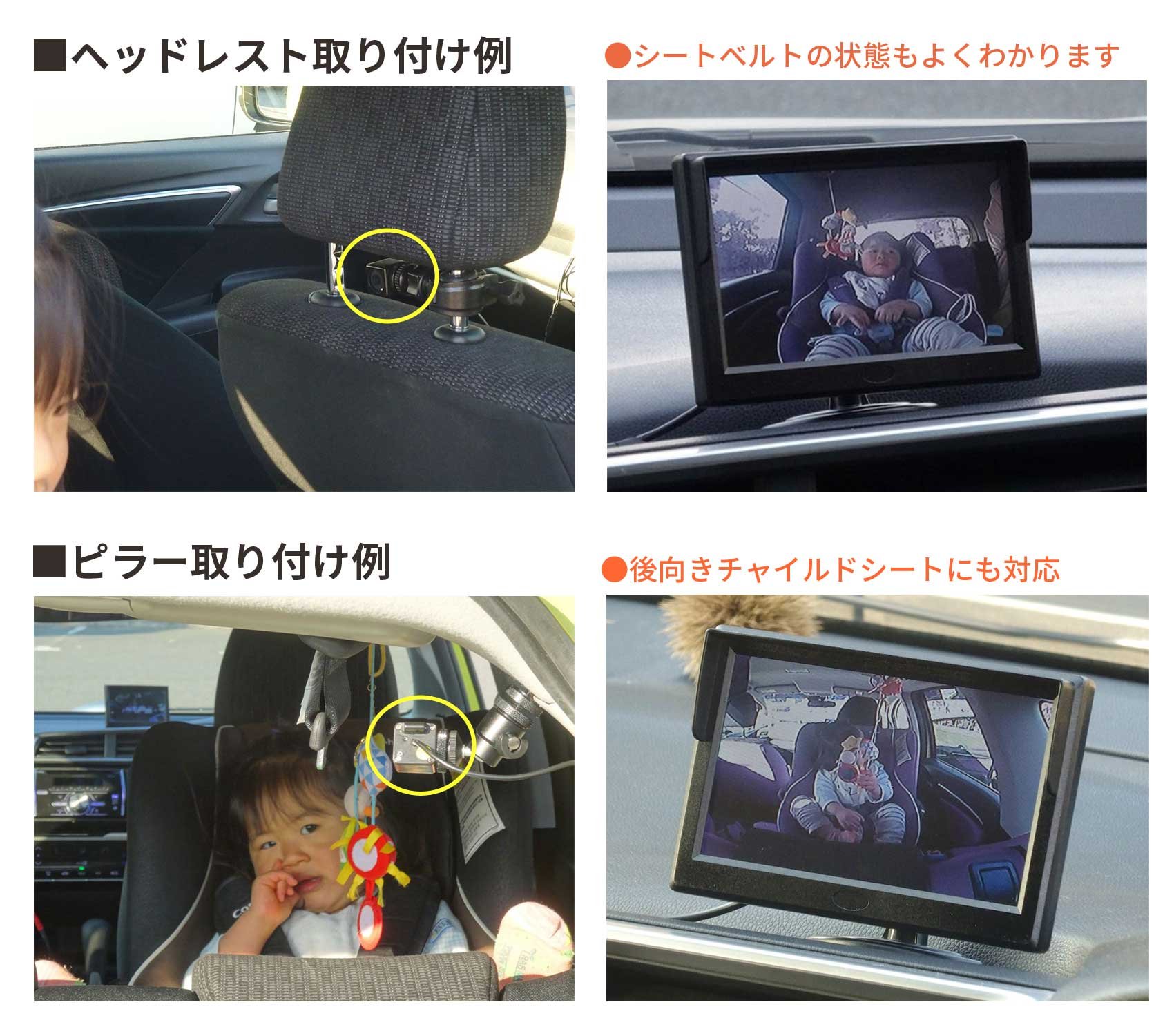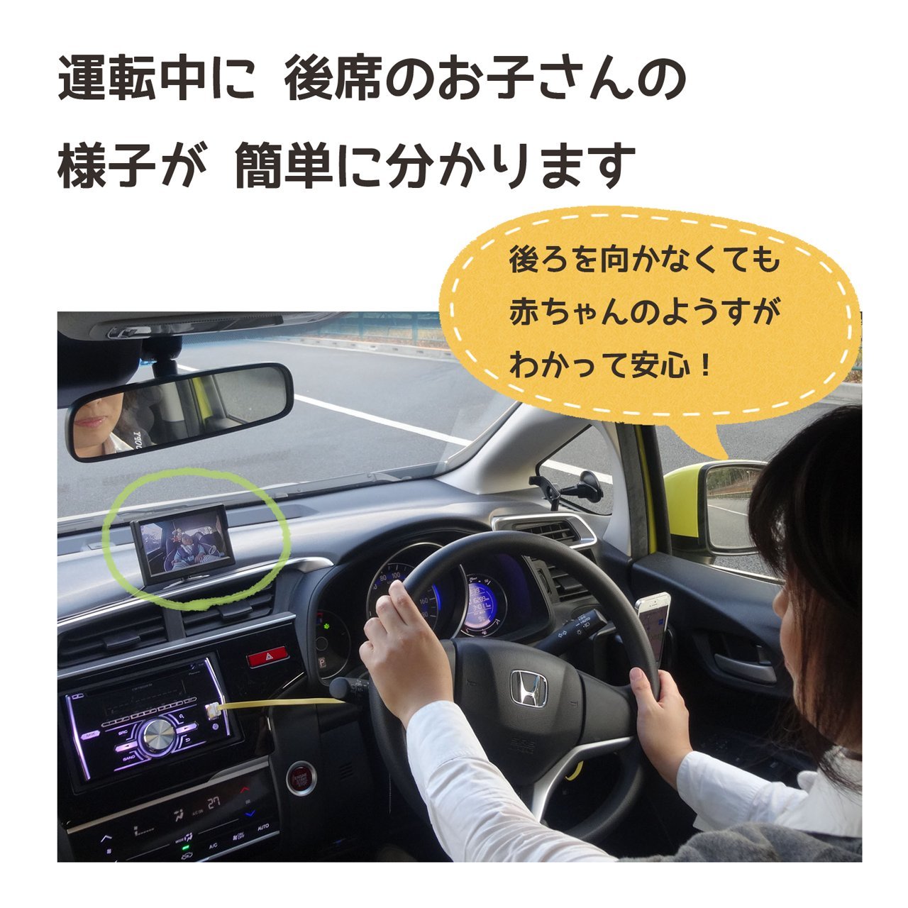 "Child monitor for automobile" shows the situation of the child in the rear seat which is difficult to confirm during driving