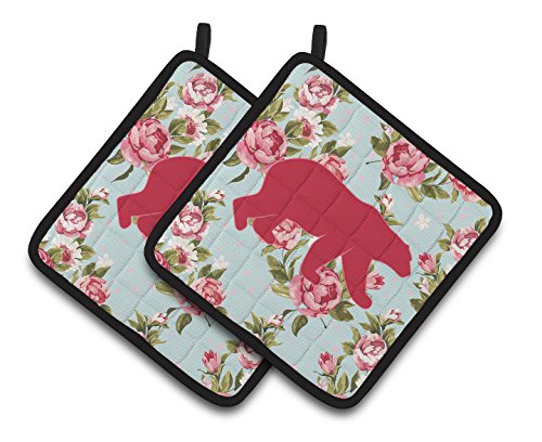 Caroline's Treasures Bear Shabby Chic Blue Roses Pair of Pot Holders BB1005-RS-BU-PTHD, 7.5HX7.5W, Multicolor