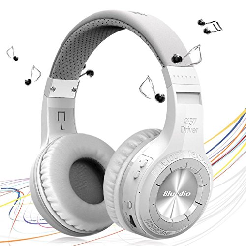 -. Feature : 1 Iconic powerful bass resonance of Bluedio: 57mm ultra-large dynamic drivers, HT style housing, with the iconic Bluedio surging low-frequency shock, let you feel the bass resonate deep in the chest, enjoying the best sound quality. Clear and transparent bass, mids and treble, fully exposed to all the details of song, you can hear what the artists really want you to hear, Coldplay or Linkin Park concert played in your ear / 2 Ultra-long operation and carefree calling from Bluetooth 4.1: With robust high speed CPU of Bluetooth 4.1 operating system, comes with ultra-long using of 40 hours music, 45 hours talk and 1625 hours (approximately 67 days) standby time. Acoustic echo cancellation and noise reduction effectively reduce ambient noise while talking, make far-end listener cannot hear what you said become history, just like talking face to face / 3 Customized function: Audio Sharing allows you to connect to another H headphone via an audio cable, share music feast with your friends instantly (recommended to use headphones with impedance of 32Ω or higher) Simultaneously connect two Bluetooth devices, connects with your phone and tablet seamlessly, listen to music or enjoy foreign blockbusters, do as you think about it / 4 Comfortable wearing: Custom fit supra-aural soft earmuffs, artificial protein leather of earmuffs simulated to human skin texture, ensure long lasting comfort in various rugged circumstances / 5 Convenience: Just a plug with audio cable, then listen to your favorite tracks without using any battery, no matter how long is your playlist. HT also incorporate 4 languages voice prompt(Chinese, English, French, Spanish), to communicate with you in your language