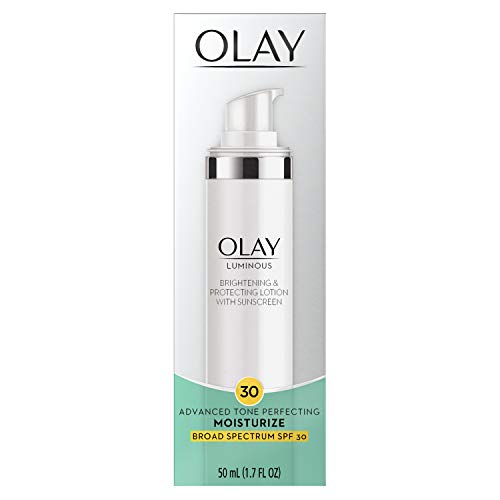 Get brighter, more beautiful looking skin in just one use of Olay Luminous Brightening and Protecting Lotion with SPF 30. This spot-fading lotion delivers hydration 10 layers deep to help restore beautiful, healthy-looking skin. It fades the look of dark spots over time for more even toned skin. Plus, it helps protect your skin from UVA/UVB rays with Broad Spectrum SPF 30. Help protect your skin from the #1 cause of early/premature skin aging, the sun, when used as directed with other sun protection measures. Lightweight and non-greasy, this formula absorbs quickly to provide a surge of healthy hydration deep into the surface of the skin.Feature