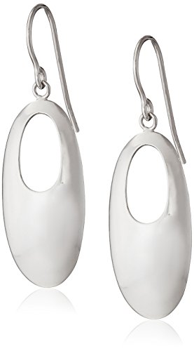 Sterling Silver Oval Dangle Earrings High Polish Rhodium plated