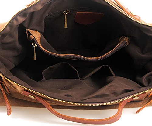 -. Feature : Dimension: 16 * 11 * 5.5"; weight 2 lb 8 oz / Top entrance zipper access; leather handle / 2 front large pockets under button closure type cover; 2 side pockets for extra storage / Internal back zipper individual pocket; internal phone and notebook holder / Vintage brass fitting hardware;16oz durable thick canvas with reinforce material added