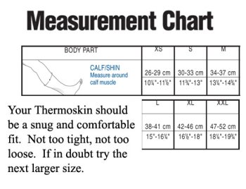 -. Binding : Misc. -. Brand : Thermoskin -. Feature : Provides protection and support for the lower leg. / Useful in treating shin splints and soft tissue damage to the calf muscle. / Clinically proven to increase your temperature at the affected area ~3 degrees, for the optimal level of heat therapy. / Patented Trioxon lining maintains elevated temperature while wicking away moisture for comfort / Trioxon lining is soft against your skin and allows air to reach your skin for maximum comfort. -. Label : Thermoskin -. Manufacturer : Thermoskin -. ProductGroup : Sports -. ProductTypeName : SPORTING_GOODS -. Publisher : Thermoskin -. Size : Click on 'See more pictures' for size chart -. Studio : Thermoskin -. Title : Thermoskin Calf Support, Shin Support, Charcoal