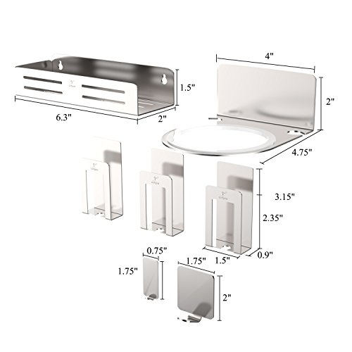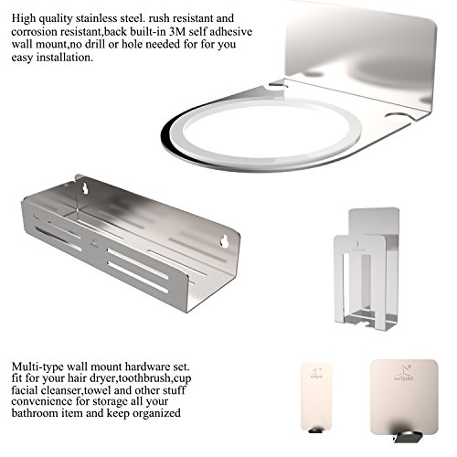 Inmount 7-Piece Bathroom Accessory Set, Washroom Hook Set, Drill Free Stainless Steel Hardware Organizer Mount, Include Hair Dryer Holder /Towel Hook / Toothbrush Gargle Cup Holder / Toothpaste Holder