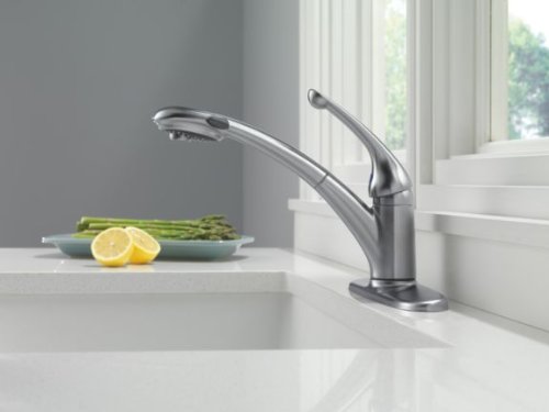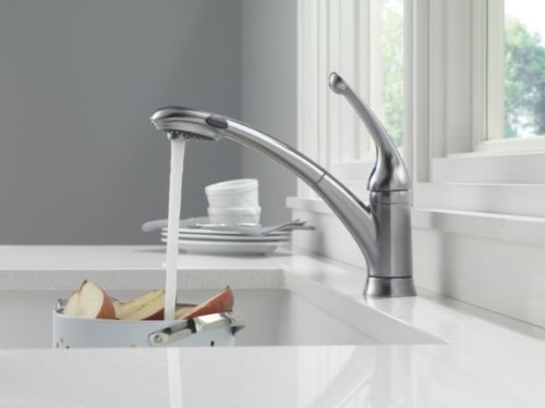 Delta 470-AR-DST Signature Single Handle Pull-Out Kitchen Faucet, Arctic Stainless