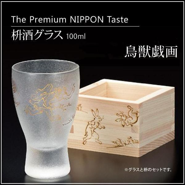 日本古来の文化や意匠を現代の技術・手法でグラスウエアに写しました。まるで氷晶の如くキラキラと煌めくグラス表面に金彩紋様が踊るモダンで涼しげな風合いの趣ある逸品です。枡には鳥獣戯画の焼印を入れています。 |