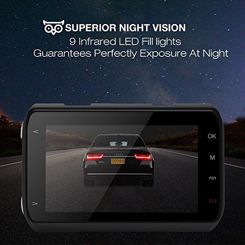 Super Night Vision: Wide Dynamic Range video system automatically adjust the exposure of the camera to create balanced images and footage. 9 infrared LED fill lights allow dash cam to perform optimally in low light situations.