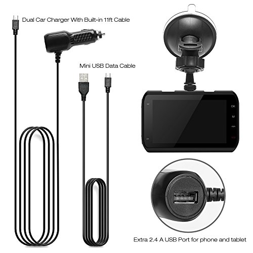 Package Includes: Dash Camera Suction Cup Car Charger with 2.4A extra port USB Cable User Manual