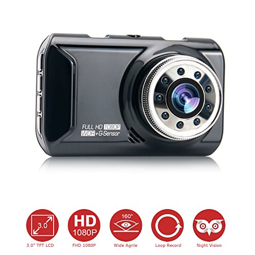 3.0" LCD Wide Screen, Full-HD Video 1920*1080 at 30 fps, super wide 160 angle 6 layers glass lens captures a sweeping view of the road.