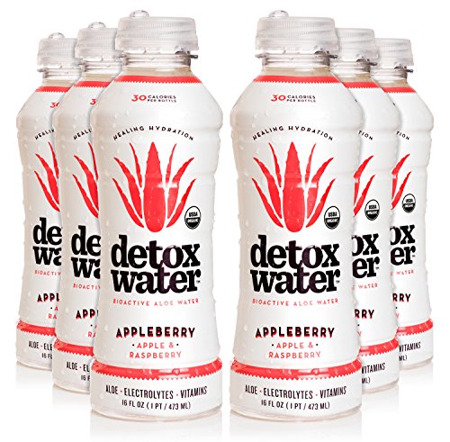 detoxwater Bioactive Aloe Water - Appleberry (Apple & Raspberry) 16 Fluid Ounces, Pack of 6