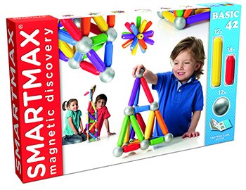 Studio : SMART TOYS AND GAMES, INC Publisher : SMART TOYS AND GAMES, INC Binding : Toy Product Description Named 2010 Toy of the Year when it was first introduced in the Netherlands, SmartMax is the magnetic discovery concept that allows children, even from a very early age, to experience both the wonders of magnetism and the fascinating world of construction in a safe way. The extra-large pieces make it easy for small children to manipulate them. The magnets have the ideal strength for easy assembly and breakdown of constructions. Outstanding, colorfully-illustrated guides in each set demonstrate the basics of magnetic phenomena, ways to strengthen structures, steps in building towers and bridges, and much more. Most importantly, children thrive on the creative satisfaction of dreaming up their own wonderfully imaginative magnetic assemblies! This product includes 42 piece set. 0
