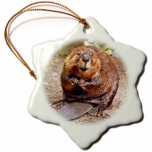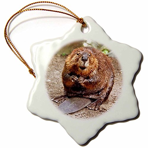 3drose Beaver Snowflake Porcelain Ornament, 3-Inch