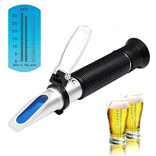Beer Wort and Wine Refractometer, Dual Scale - Specific Gravity 1.000-1.120 and Brix 0-32%, Replaces Homebrew Hydrometer (Aluminum)