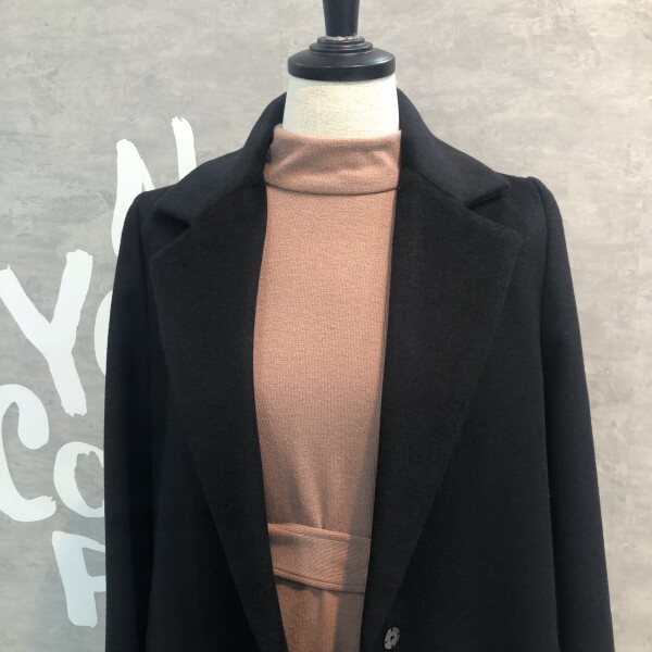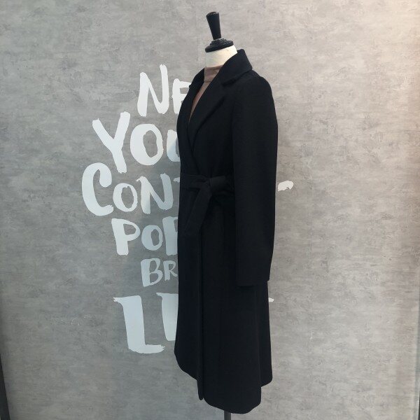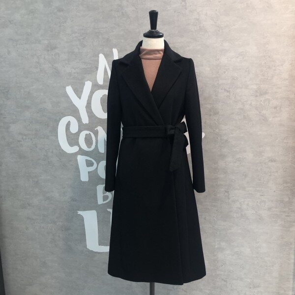 벨티드 디테일의 A라인 실루엣이 페미닌한 캐시미어 블렌드의 코트입니다