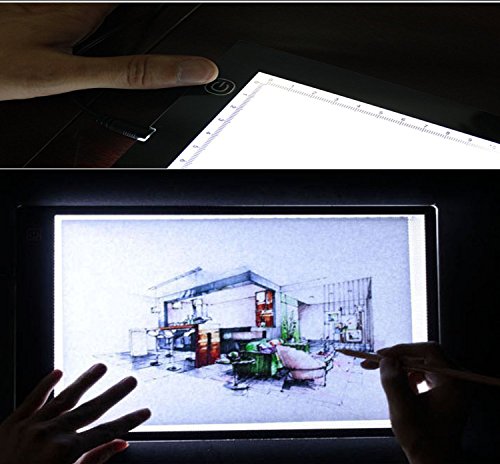 Adjustable brightness: A4 drawing light pad comes with touch switch to control brightness by pressing, super bright lamps inside light box illuminated surface perfectly