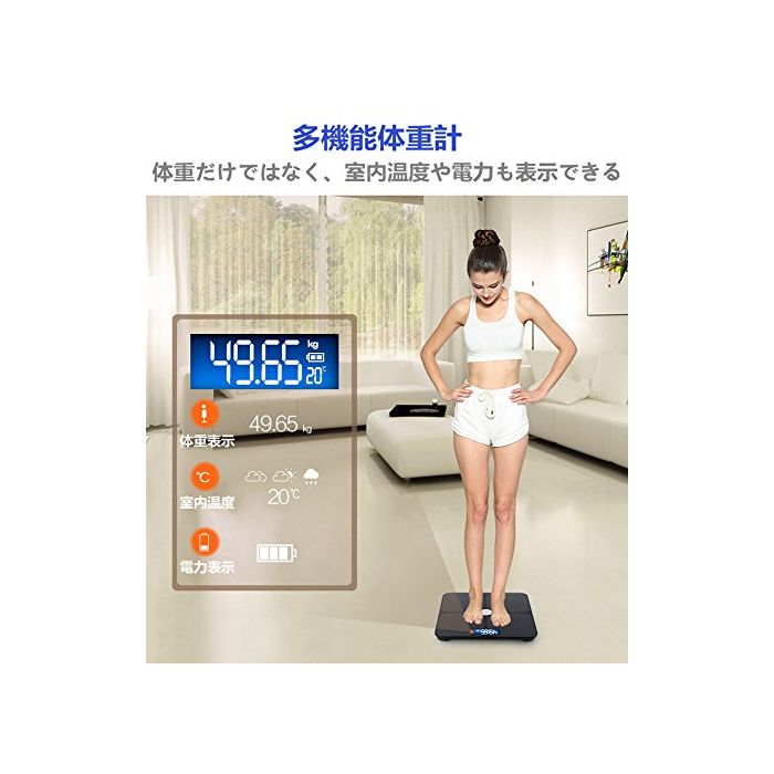원본상품명: AoSky デジタル ?重計 ボディ?スケ?ル【最小計量200g 0.01kg?位 23mm超薄型】円角デザイン ステップオン機能 ??や電力表示 計量範?5-180kg 28*28*2.3cm 高精