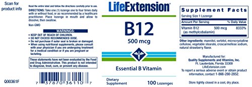 -. Title : Life Extension B12, 500 Mcg, 100 dissolving lozenges