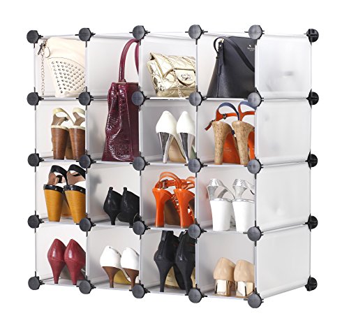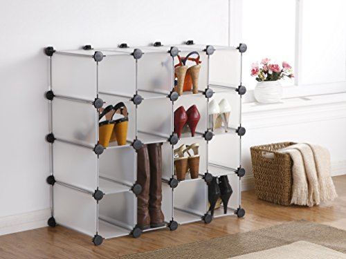 - Feature : Makes 16 large storage compartments - for shoes or other household items / Can be made into any shape you like including 4x4, 2x8, as a single unit or any other shapes you can imagine! / Can be easily assembled to fit any space / Attractive looking, functional organizer for around the house / Metal frame makes it very sturdy with a wipe clean body