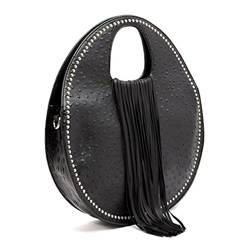 Studio : Western Fashion Publisher : Western Fashion Binding : Apparel Product Description Handbag REPUBLIC® Ostrich Embossed Round Fringe Satchel w/ Strap Wallet- Black