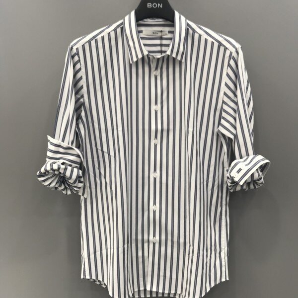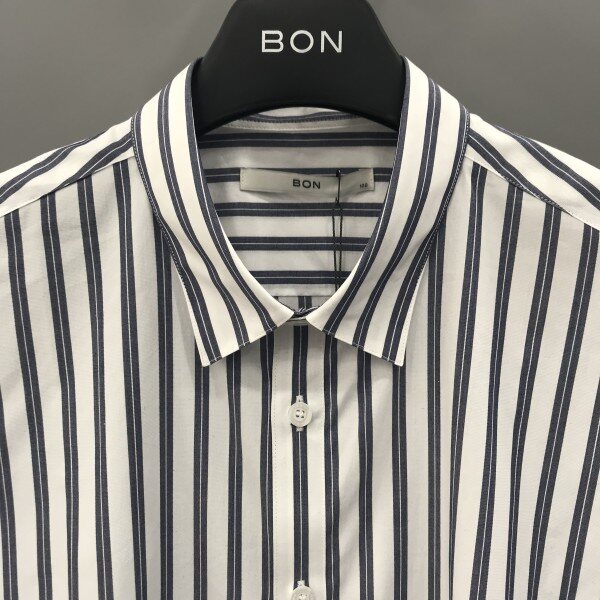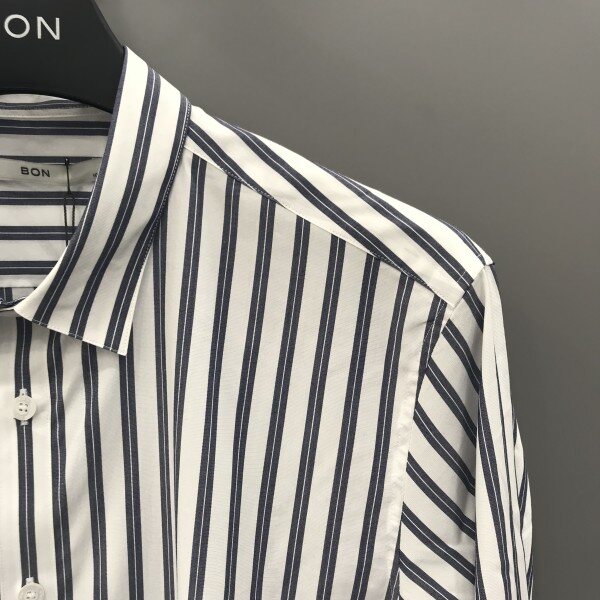 18년도 S/S 신상품이며 두꺼운 두줄이 스트라이프로 포인트 준 셔츠 입니다.