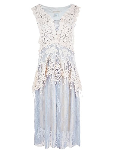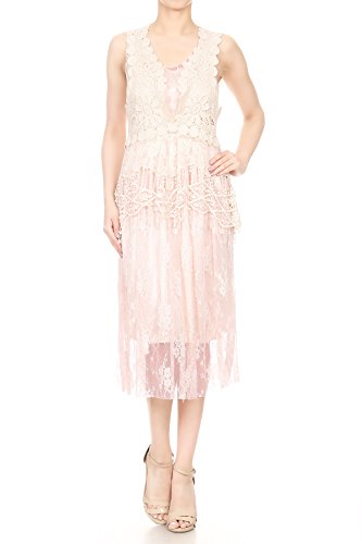 It's no secret why the Anna-Kaci Womens Vintage Floral Embroidery Detail Lace Ruffle Gatsby 1920s Dress is one of Anna-Kaci's most popular styles! The dress is constructed from a soft and lightweight lace fabric that drapes beautifully against your body and the sleeveless crochet vest adds the perfect vintage inspired touch. The dress draws inspiration from the straight silhouette and drop waist style popular during the 1920s and echoes the style of an unforgotten era with a modern interpretation. When worn together the two items create a beatiful ensemble that will transport you back to the jazz age and make you feel like a guest at a lavish Jay Gatsby party!