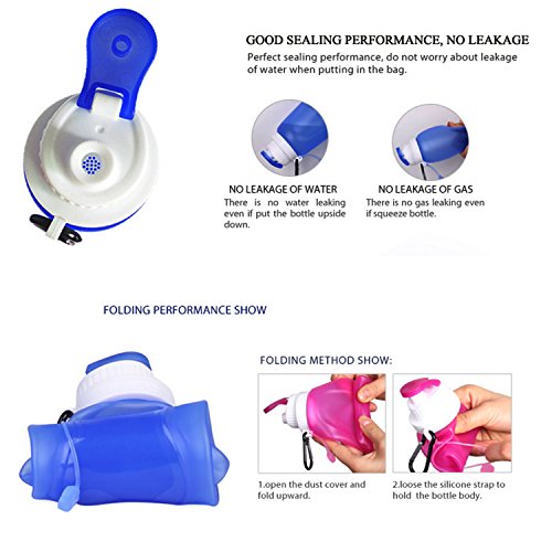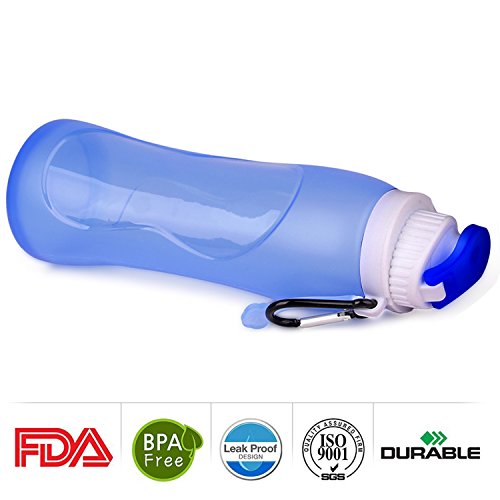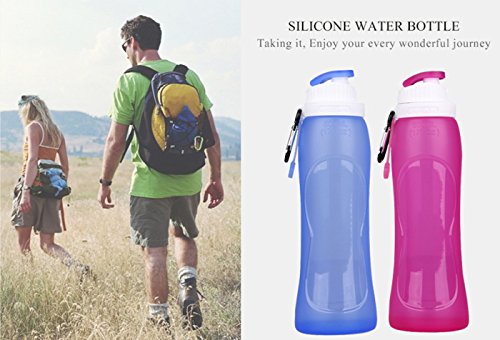 17 OZ (500ML) Collapsible Water Bottle, Collapsible with metal carabiner and retainer band for storage and carry on.