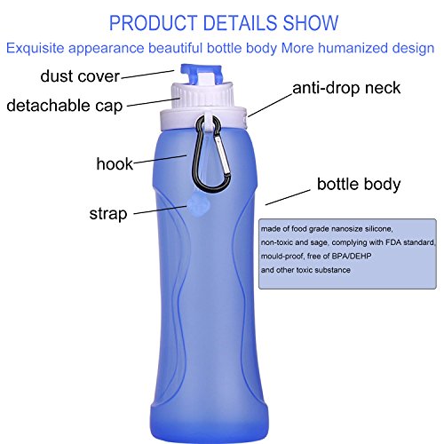 Soft and lightweight silicone material that can be collapsible, you can put it in your backpack or pocket,save much space.Free carabiner allows the bottle to be secured to any backpack, bag, duffel bag.
