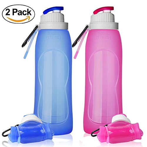 Collapsible Water Bottles, TurnRaise Foldable Silicone Bottle FDA-approved Roll Up Cup for Outdoors, Hiking, Camping, Biking and Traveling Set of 2 Pack
