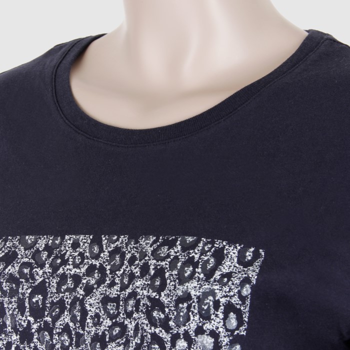 앞판 사각의 레오파드 프린트가 특징인 티셔츠 입니다.