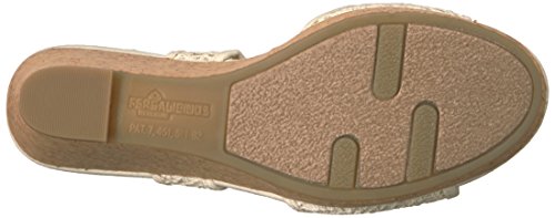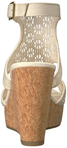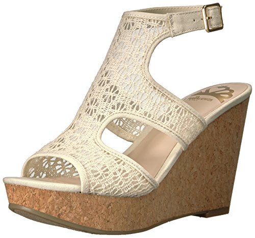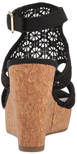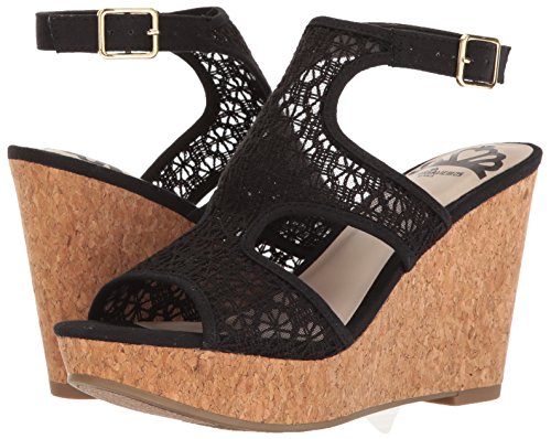 Amazon.com Fergalicious sandals are full of feminine charm, and this Kendra wedge sandal doesn't lack in detail. The strappy vamp design rises over a platform midsole with a 3 1/2 wedge heel, covered with crocheted fabric. A buckle on the ankle adds adjustable comfort and fit. 0