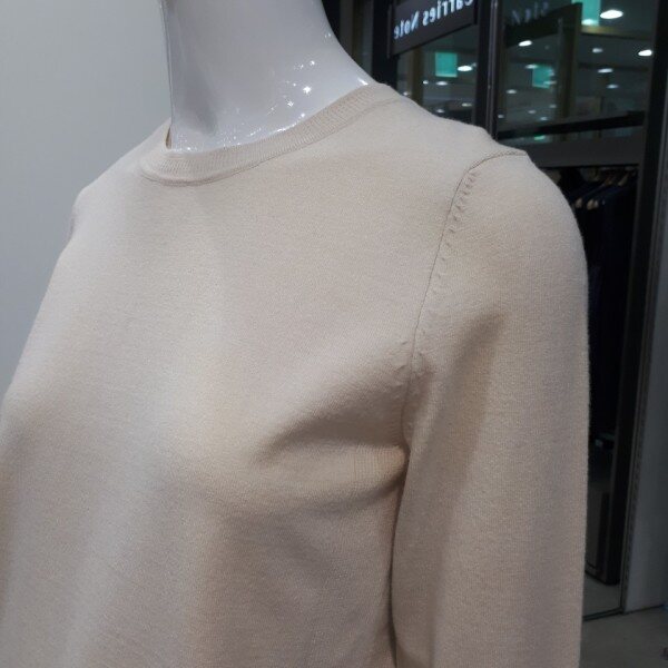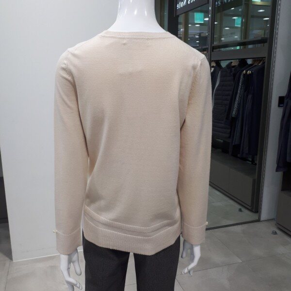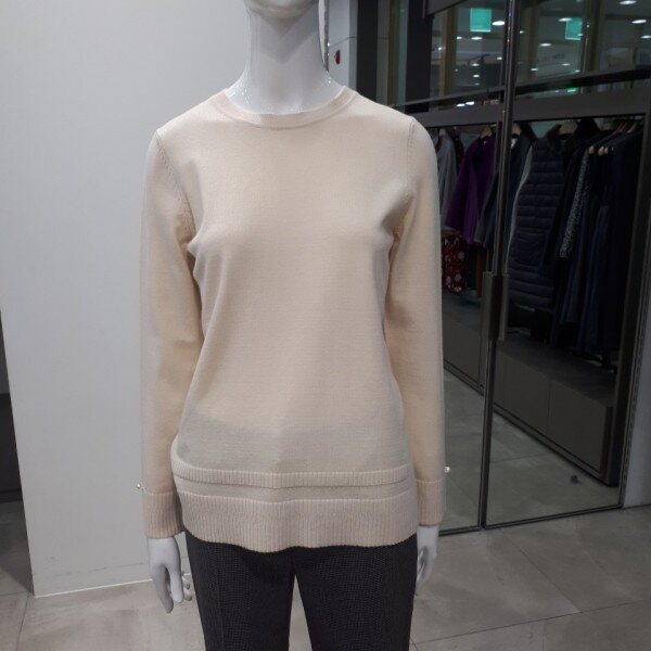 소매진주장식으로 포인트를 준 라운드 니트 티 입니다