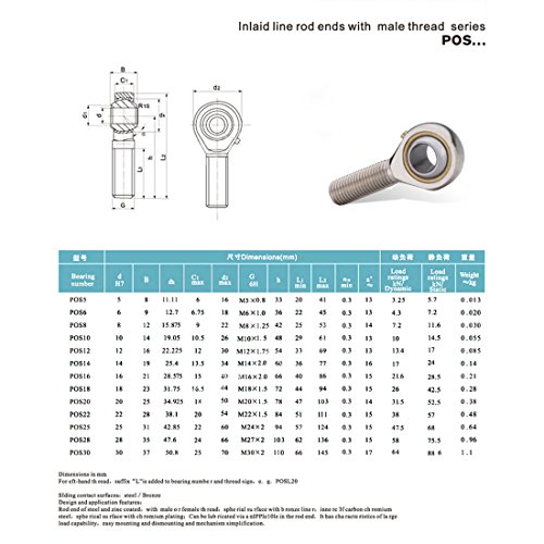 uxcell POS5 5mm Inside Dia 5.7KN Male Right Hand Rod End Bearing Connector 2pcs