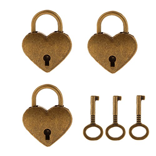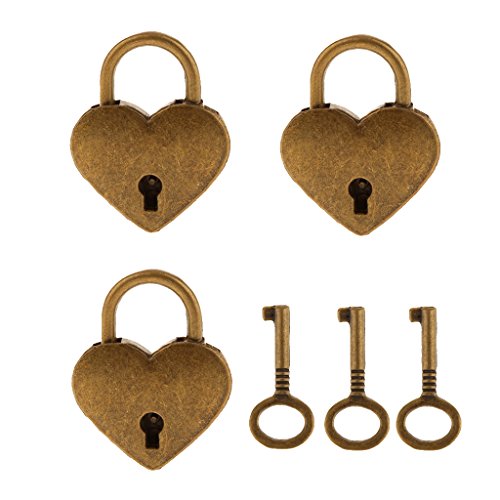 -. Title : Set of 3 Vintage Heart Shape Padlock with Keys Lock Set - Antique Brass M