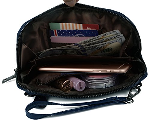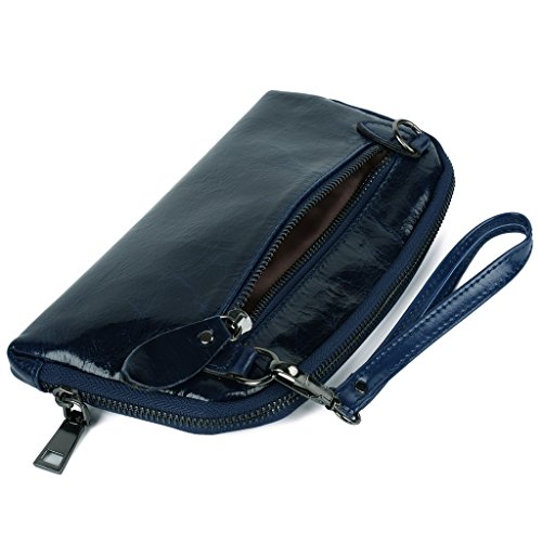 - Title : Yahoho Women's Large Capacity Soft Genuine Leather Wristlet Clutch with Shoulder Strap Blue