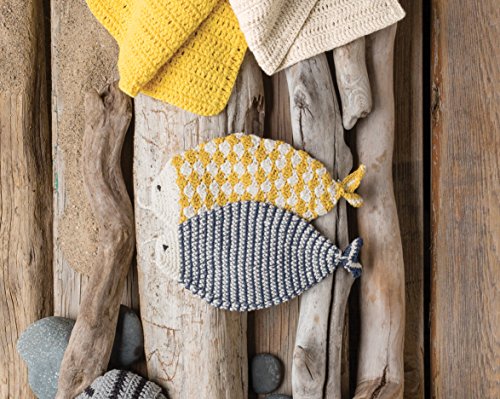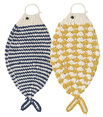 Now Designs Tawashi Fish-Shaped Scrubbers, Honey and Blue, Set of 2